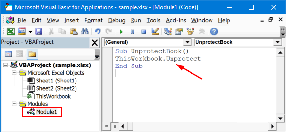 - Kattintson duplán az újonnan létrehozott modulra a bal oldalon. Másolja ki és illessze be a következő kódot a jobb oldali ablaktáblába.