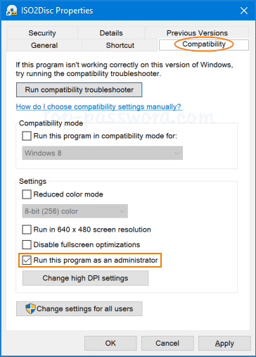 2. módszer: Mindig futtasson rendszergazdaként kompatibilitási módban