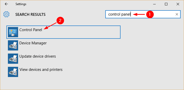 Kattintson a Cortana keresősávjára, amely a tálcán a Start gomb közelében található. Írja bevezérlőpultés nyomja meg az Entert.