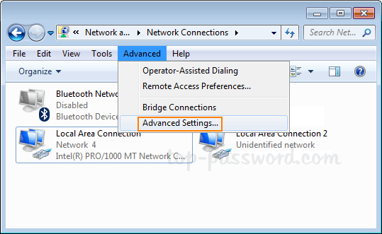 - Látnia kell a hálózati adapterek listáját. Nyomja meg aMindengombra (ha a menüsor még nem látható), és kattintson aFejlettmenüt, majd válassza kiSpeciális beállítások.