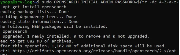 $ sudo OPENSEARCH_INITIAL_ADMIN_PASSWORD=$(tr -dc A-Z-a-z-0-9_@#%^-_=+ < /dev/urandom | head -c${1:-32}) apt-get install opensearch