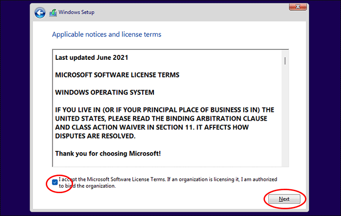 15. lépés:Jelölje be a jelölőnégyzetet a licencfeltételek elfogadásához, majd kattintson a Tovább gombra.
