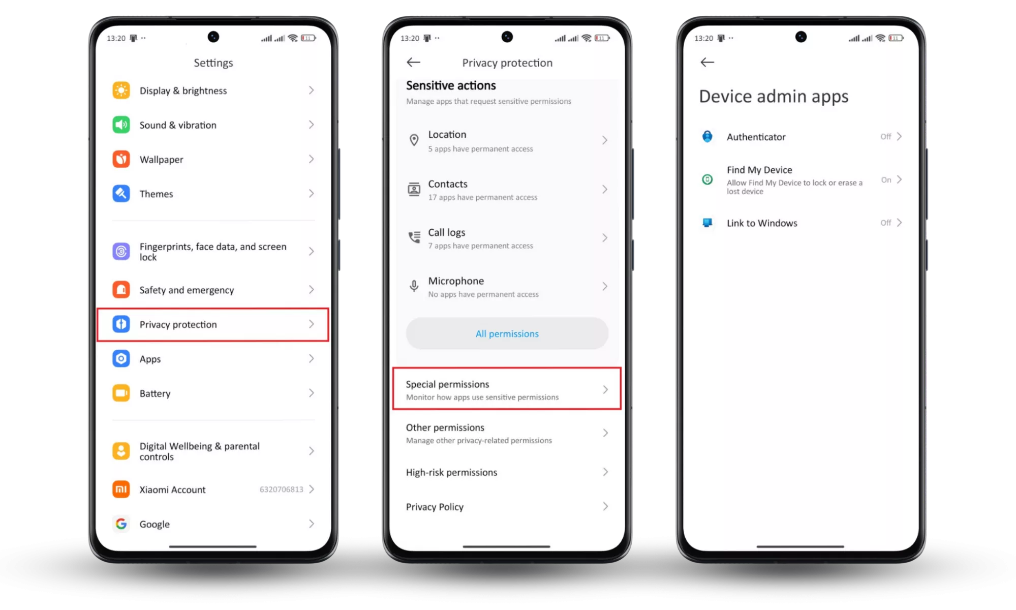 1–4. lépés: Nyissa meg a Beállítások > Adatvédelem > Különleges engedélyek > Eszközadminisztrációs alkalmazások lehetőségetEzenkívül tartsa szemmel a sajátjátLegutóbbi alkalmazások(a négyzetes vagy háromsoros gomb a képernyőn). Ha megjelenik itt egy alkalmazás, de biztos benne, hogy nem mostanában nyitotta meg, ez egy újabb utalás arra, hogy valami gyanús dolog futhat a háttérben.