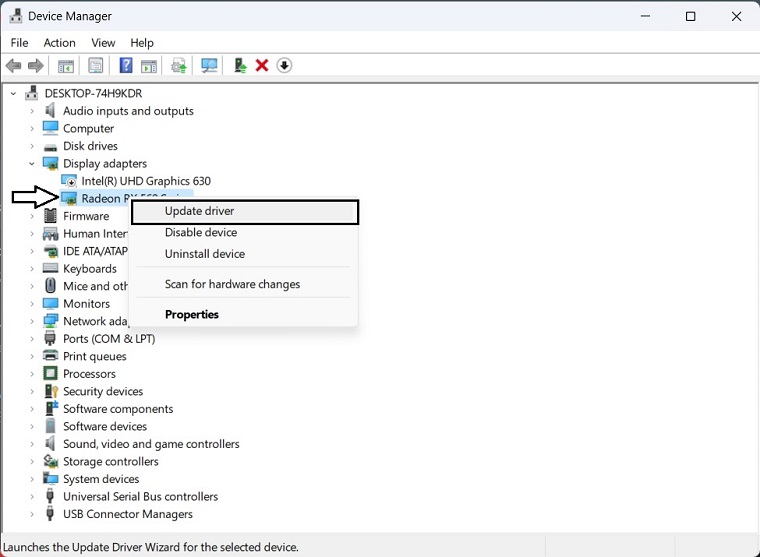 - Kattintson a jobb gombbal a grafikus kártyára, majd kattintson a gombraFrissítse az illesztőprogramot.