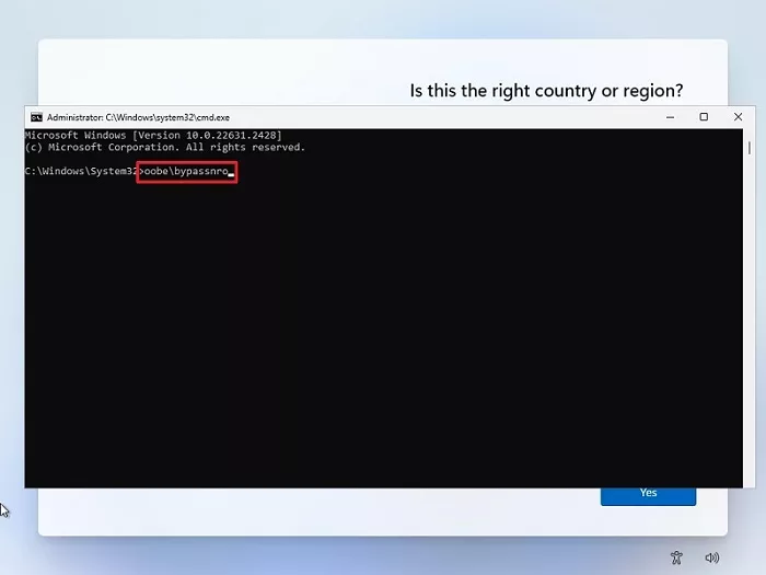 1. megoldás: Hajtsa végre az OOBEBYPASSNRO parancsot