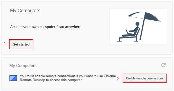 3. A Sajátgépek alatt kattintson a gombraKezdje el. KattintsonTávoli kapcsolatok engedélyezése. A Chrome letölti a.dmgfájl (Mac rendszeren) vagy.msifájl (Windows rendszeren). KattintsonMegtakarítás. Miután letöltötte a fájlt, nyissa meg.
