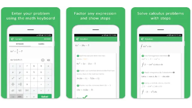 Grafikonokat is biztosít az egyenletek és függvények megjelenítéséhez. További funkciók eléréséhez és az alkalmazás további felfedezéséhez prémium előfizetést kell vásárolnia. A Cymath több mint 5 millió felhasználóval rendelkezik Android okostelefonokon és iOS eszközökön.