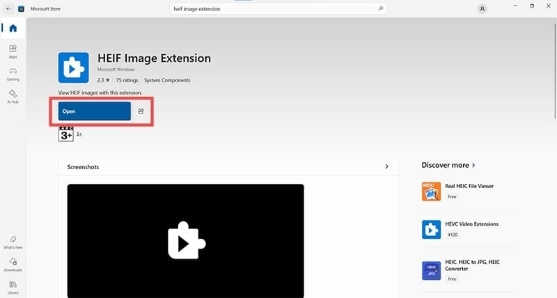 2. lépésÍrja be a „HEIF Image Extension” kifejezést a keresősávba.