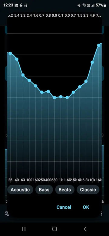 Ha Samsung készüléke van, és Galaxy Buds vagy AKG-meghajtású fülhallgatót használ,talán a legjobb equalizer. A root nélküli Wavelet számos funkciót kínál, beleértve a grafikus hangszínszabályzót, a basszuserősítőt és a visszhanghatásokat. Mind az alkalmi hallgatókat, mind az audio rajongókat szolgálja ki. Itt vannak a Wavelet equalizer beállításaim. Ha Galaxy Buds Pro-t használ, referenciaként használhatja őket.