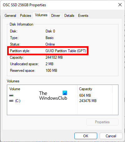 Ha a BIOS módot örököltről UEFI-re szeretné konvertálni, a merevlemez partícióstílusának GPT-nek kell lennie. Ha a merevlemez MBR partícióstílusú, akkor nem tudja megváltoztatni a BIOS-módot Legacy-ról UEFI-re. A merevlemez partícióstílusának ellenőrzéséhez kövesse az alábbi utasításokat: