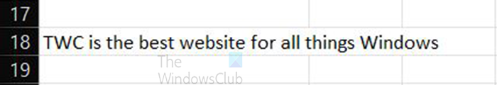 Így néz ki a szöveg az Excelben a Wrap text használata előtt. Észre fogja venni, hogy a szöveg átkerül a cellák helyére.