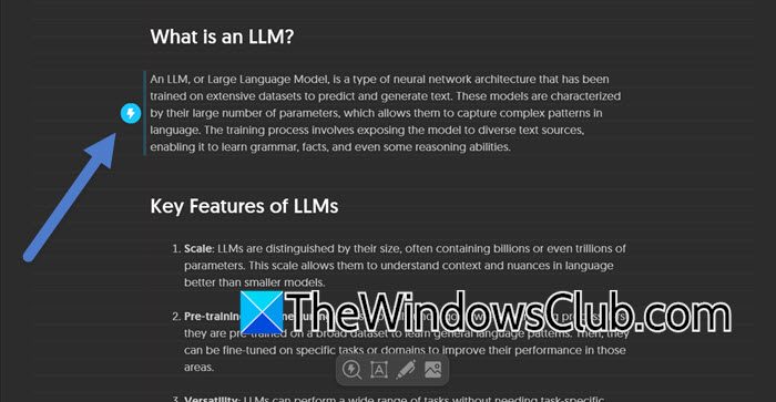 Például van egy egyszerű felszólításom,"Mi az LLM?".Kaptam egy teljes cikket képek nélkül. Itt jön a szórakoztató rész, a bekezdés bal oldalán található Thunder ikonra kattintva látványelemeket generálhat. Ezután válassza ki a kívánt képet a képek listájából, és válassza ki a stílusát is.