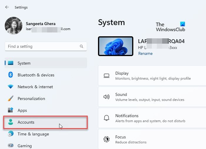 ABeállítások elemreablak jelenik meg. Az ablak bal oldali paneljén számos beállítási lehetőség látható. Kattintson aFiókoklehetőséget a fiókbeállítások megnyitásához.