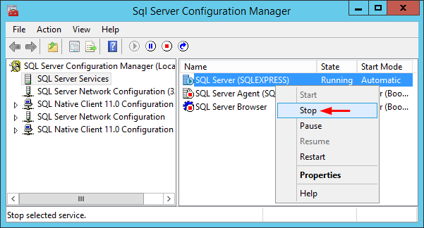 Stop-Service -Name 'MSSQL$SQLEXPRESS'Lettura consigliata:3 modi per verificare quale versione o edizione di SQL Server è in esecuzione