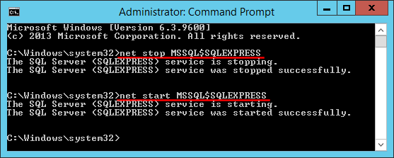 - Per arrestare un'istanza denominata di SQL Server, digitare il comando seguente. Sostituisci SQLEXPRESS con il nome dell'istanza.