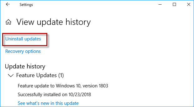 Passaggio 2: scegliWindows Update > Cronologia aggiornamenti > Disinstalla aggiornamenti.