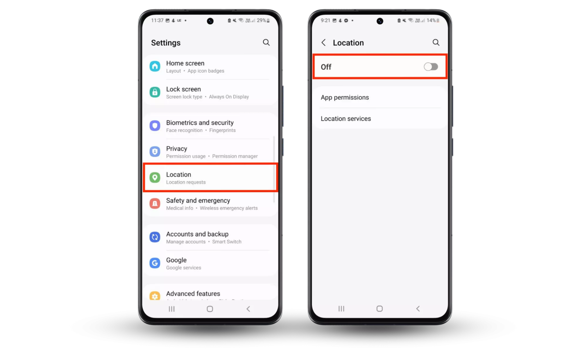 Il primo passo è disattivare le autorizzazioni di posizione come sopra. Vai aImpostazioni > Privacy > Gestione autorizzazioni > Posizione. Disattiva le autorizzazioni di posizione per tutte le app che non le richiedono.