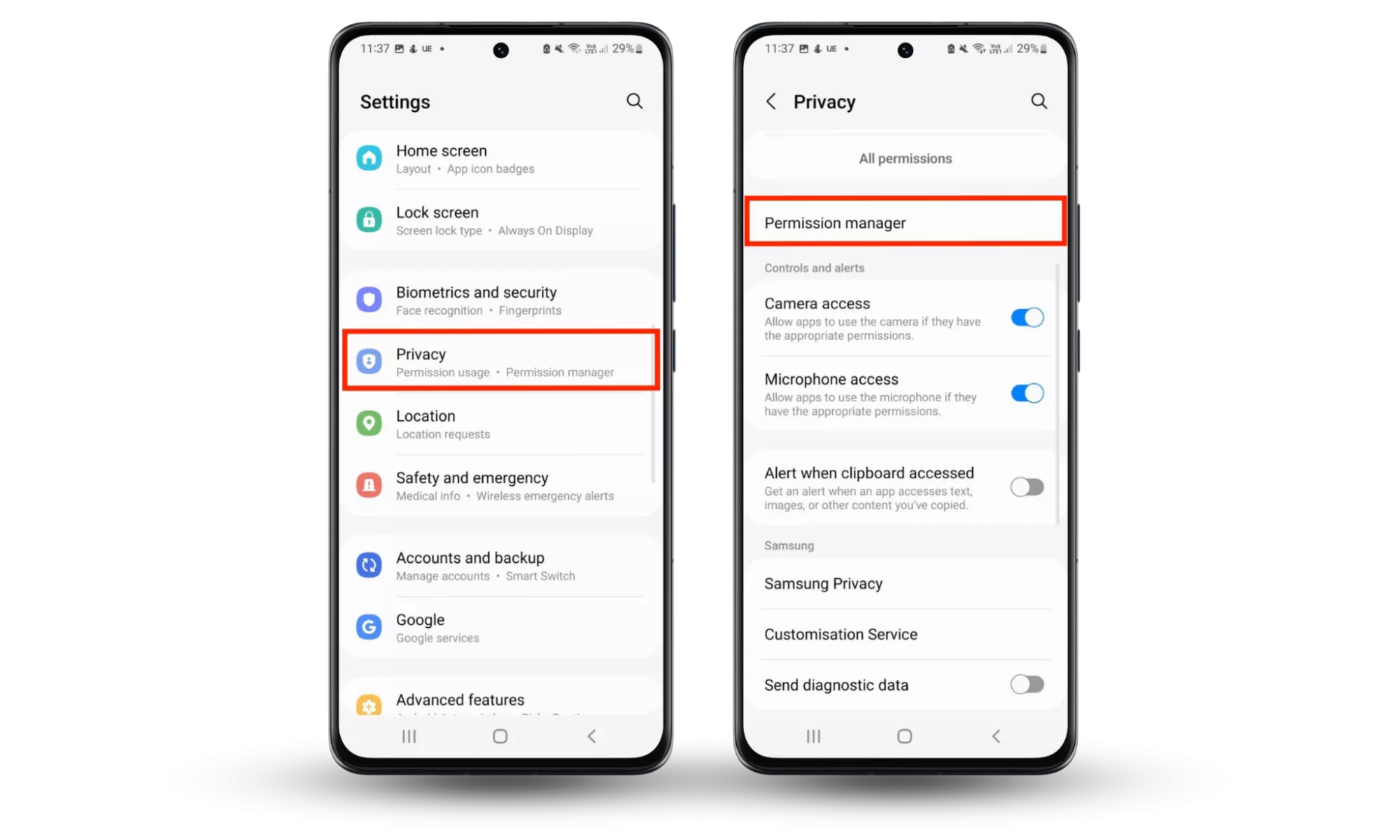Passaggio 1-2. Apri Impostazioni > Privacy > Gestione autorizzazioni.