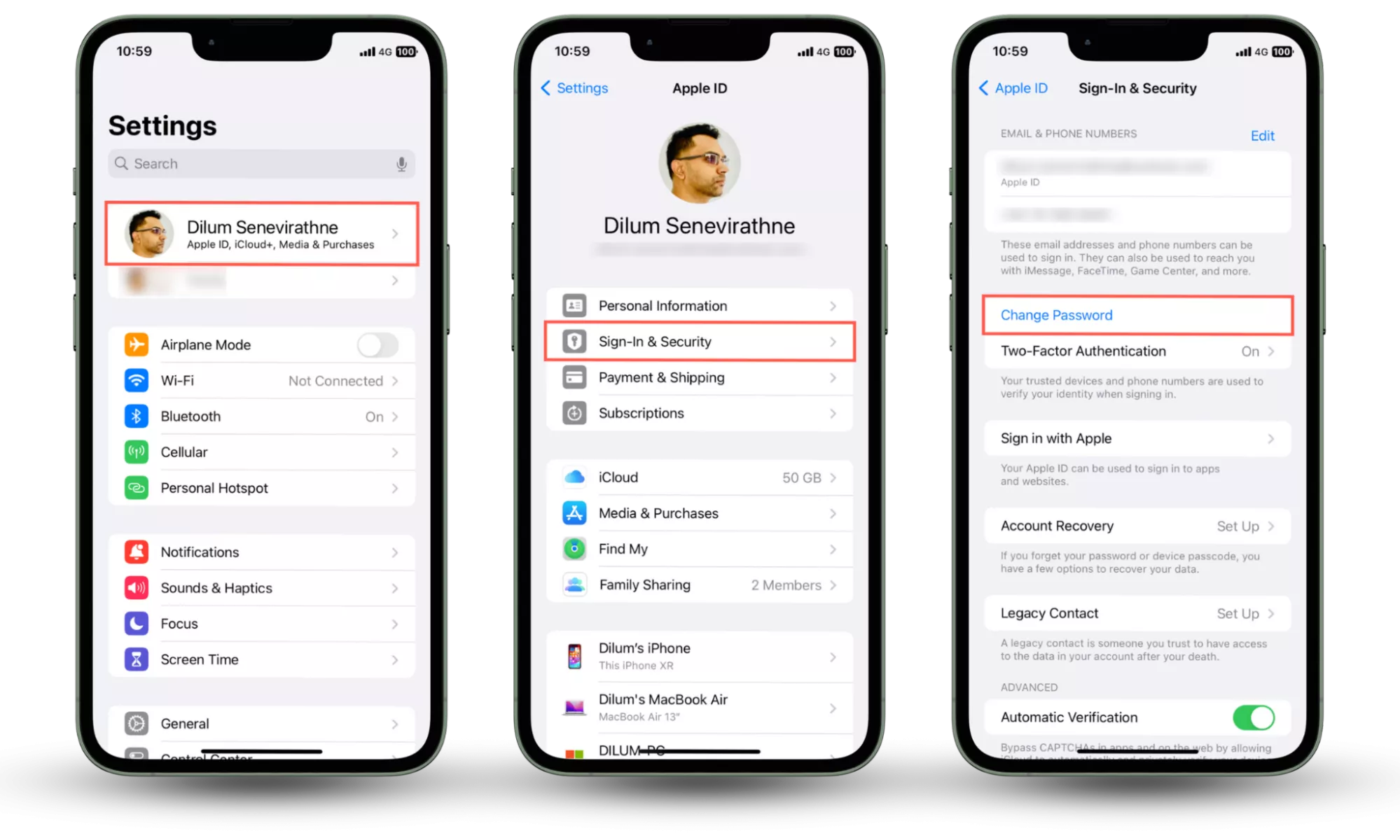 Passaggi 1-5: vai su Impostazioni > ID Apple > Accesso e sicurezza per modificare la password dell'ID Apple.Mancia