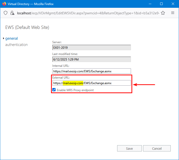 Prima di avviare e creare un endpoint di migrazione in Exchange Online, è necessario abilitare e ottenere l'URL dell'endpoint proxy MRS dal server Exchange locale.