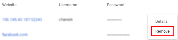 Passaggio 3: selezionaSito Web e nome utentepreferisci eliminare e scegliere il fileRimuoverepulsante. Puoi anche fare clicRimuovi tuttoper ripulire i tuoi salvatiSito Web e nome utentefugacemente.
