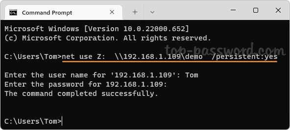 Metodo 2: mappare un'unità di rete con il normale prompt dei comandi