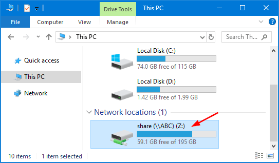 - Dopo aver riavviato il computer, le unità di rete create dalle app con privilegi elevati saranno visibili in Esplora file e le app con privilegi elevati potranno anche accedere alle unità di rete create dai programmi eseguiti con diritti standard.