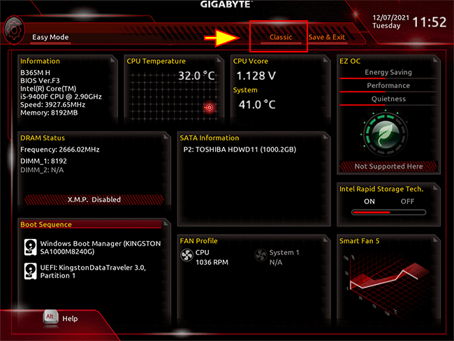 Passaggio 7:Dopo aver inserito le Impostazioni firmware UEFI, puoi andare a fare clic suClassicoopzione.