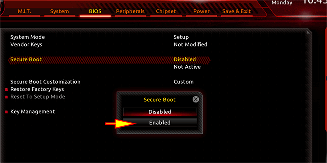 Passaggio 10:Successivamente, scorri verso il basso il mouse e puoi trovare il fileAvvio sicuroopzione. Fare doppio clic e modificare lo stato inAbilitato.