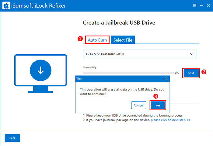 Passaggio 4:Il software rileverà automaticamente il tuo dispositivo USB. ClicMasterizzazione automatica, Poi