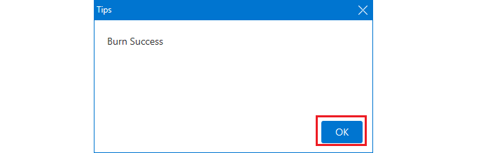 Passaggio 5:Se viene visualizzato "Burn Success", quindi fare clicOK.