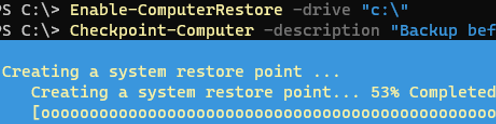 Inoltre, puoi creare manualmente un punto di ripristino da un prompt di PowerShell: