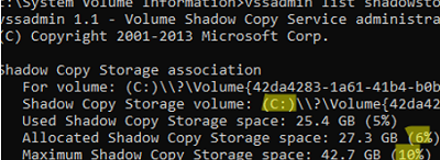 vssadmin resize shadowstorage /on=c: /for=c: /maxsize=50GB