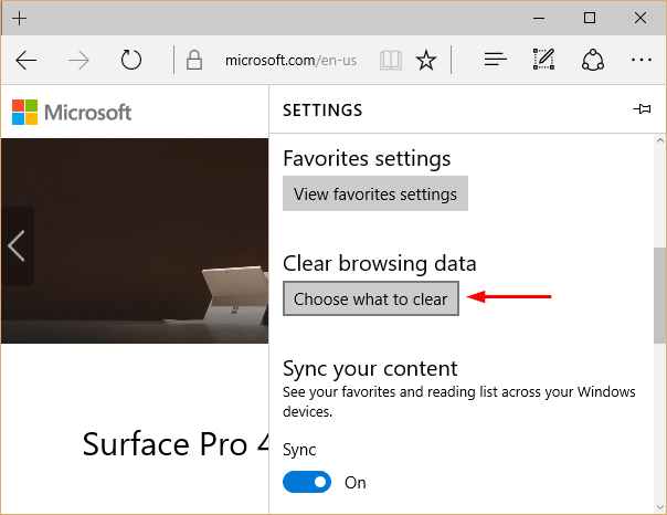 - Con le impostazioni aperte, fare clic suScegli cosa cancellarepulsante sotto "Cancella dati di navigazione".