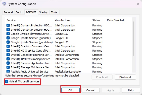 - Vai aServizi> Fare clic suNascondi tutti i servizi Microsoftper abilitarlo.
