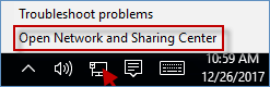 Fare clic con il pulsante destro del mouse suIcona di Internet, selezionaApri Centro connessioni di rete e condivisioneopzione.