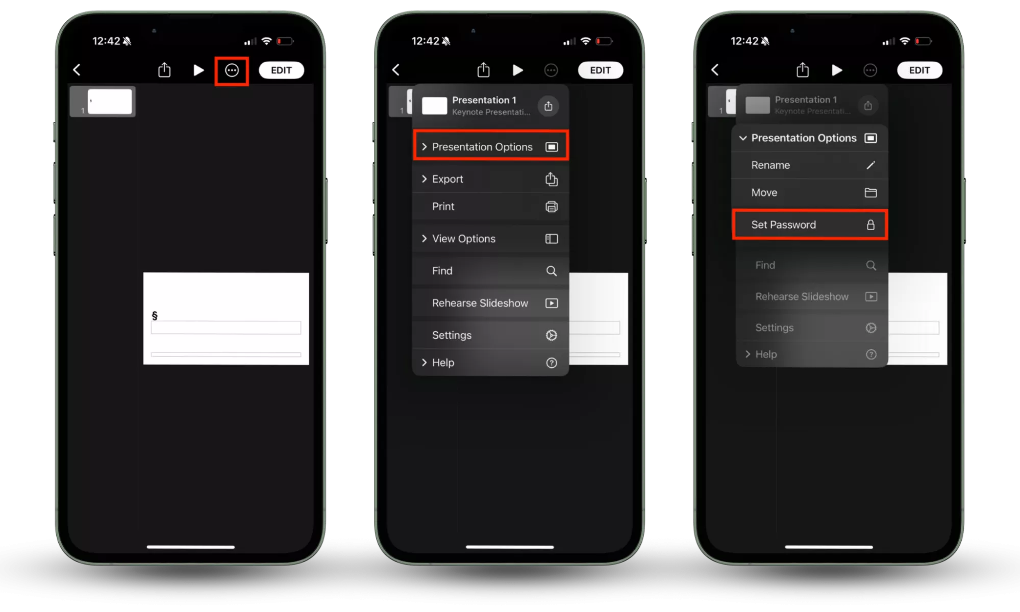 Passaggi 1-4: apri l'app Numbers, seleziona un documento, premi i tre punti nell'angolo in alto a destra, quindi scegli Imposta password.Ecco come impostare le password sui documenti nelle app Pages e Keynote di Apple: