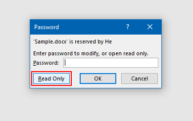 Passaggio 1: quando ti viene richiesto di inserire la password per modificare, ignorala e fai clic suSola letturapulsante per aprire il documento Word in sola lettura.