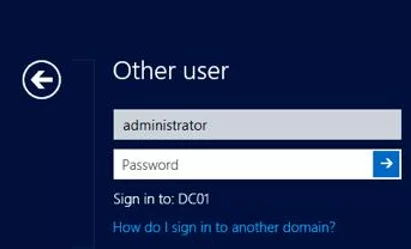 Immettere il nome utente locale (amministratore) e la password (password DSRM) nella schermata di accesso.