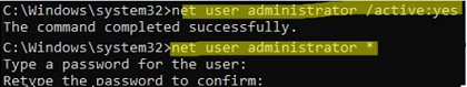 net user administrator /active:yes - Ora puoi reimpostare la password dell'amministratore del dominio: