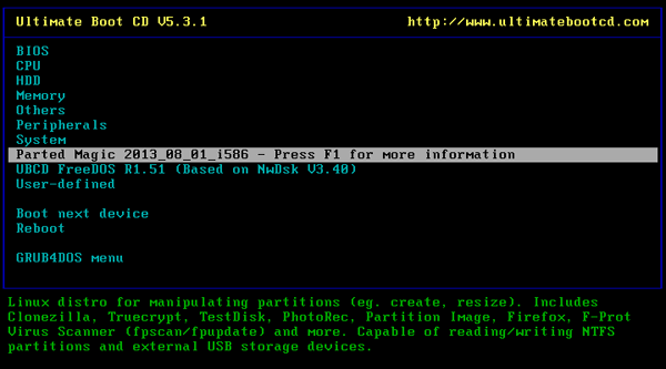 - Avvia il computer bloccato da Ultimate Boot CD. Nel menu di avvio di Ultimate Boot CD, scegliMagia separatae premere Invio.