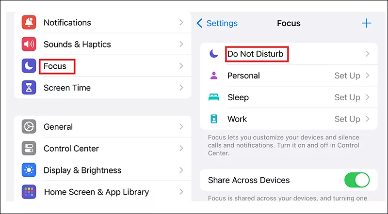 Passaggio 2:Tocca Focus > "Non disturbare“.