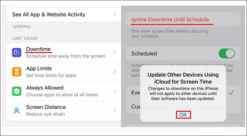 Sebbene iOS stesso non supporti lo spegnimento automatico di iPhone/iPad, possiamo utilizzare Screen Time per bloccare tutte le app per un periodo di tempo specifico, impedendoti di utilizzare il dispositivo durante quel periodo. Ecco come: