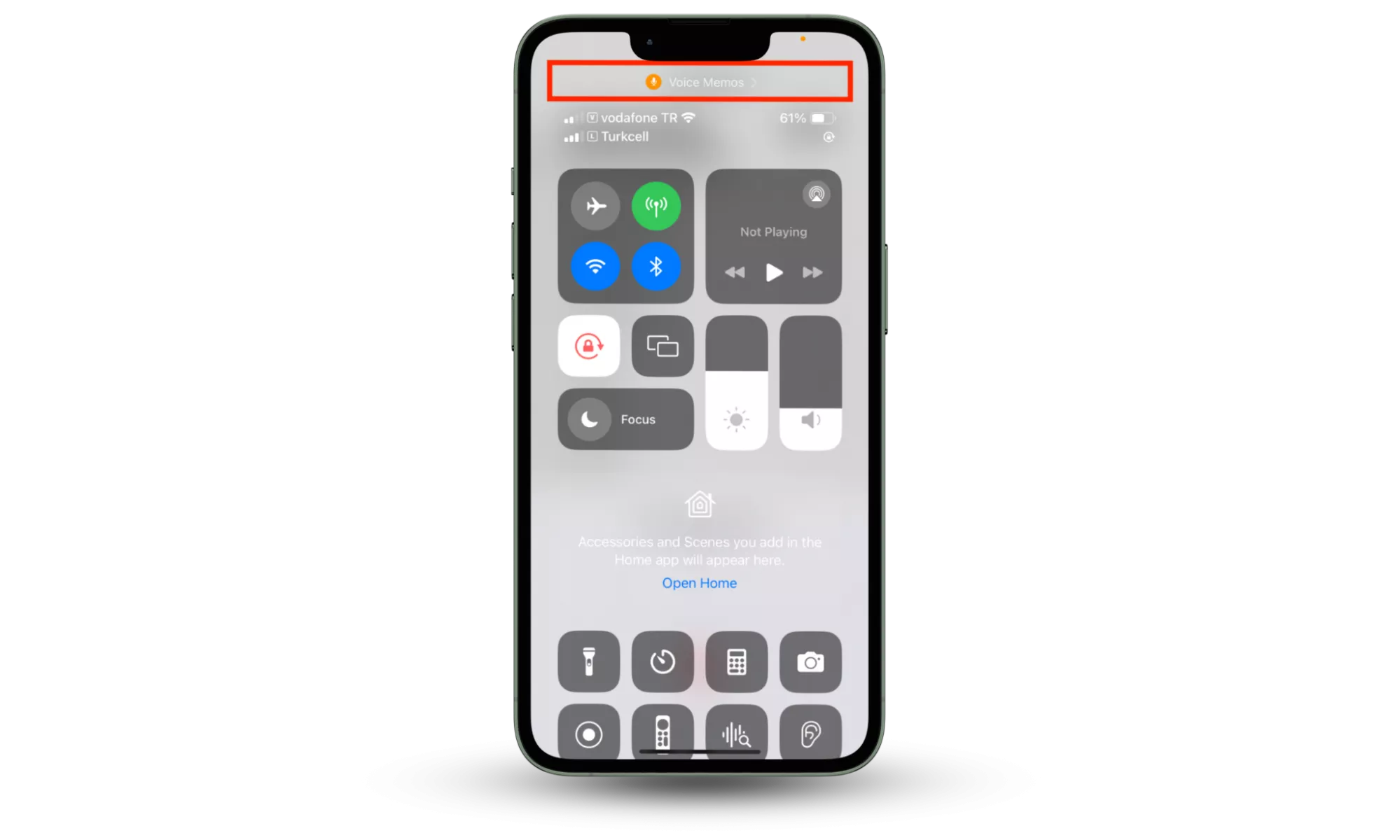 Scorri verso il basso sullo schermo per sapere se un'app sta utilizzando il tuo microfono. Se è presente un punto arancione con l'icona di un microfono nel Centro di controllo, indica che un'app o una spia sta accedendo al tuo microfono.
