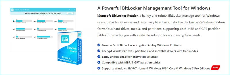 Lettore– per aprire, accedere e sbloccare l'unità protetta da BitLocker sul sistema operativo Windows. Esso