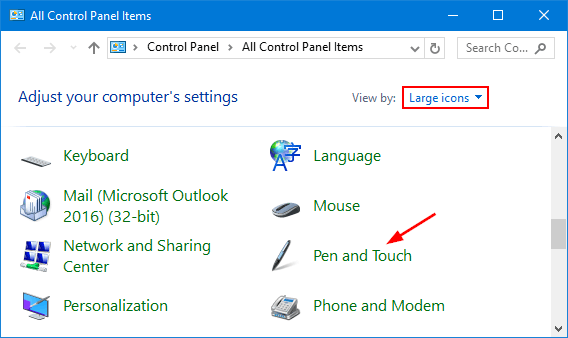 Apri il Pannello di controllo e imposta il fileVisualizza peropzione aIcone grandi. ClicPenna e tocco.