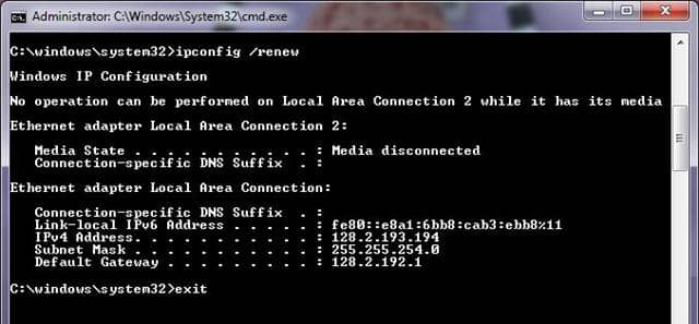 - ipconfig/rinnova –Rinnova l'indirizzo IP del tuo dispositivo.