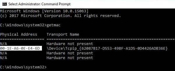 Il comando getmac visualizza gli indirizzi MAC (Media Access Control) del tuo dispositivo. Quando digiti getmac e premi Invio, vedrai un indirizzo fisico e un elenco di nomi di trasporto.