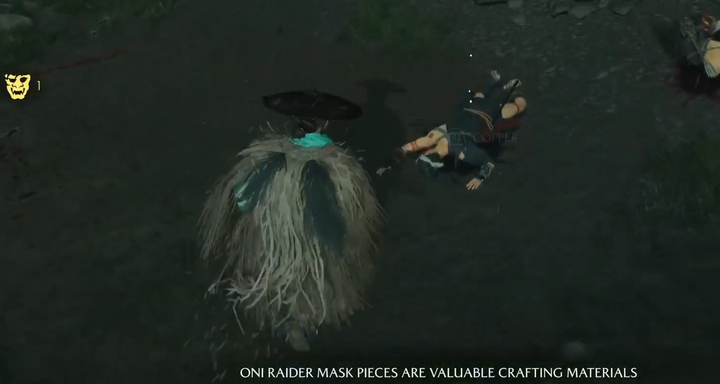 Inizialmente incontrerai i Predoni Oni durante la missione chiave della storia "La strada per la pianura di Ishikari", in particolare al checkpoint delle Colline Dorate. All'inizio di questa missione, inizierai a raccogliere i tuoi primi pezzi della maschera Oni Raider, che vengono rilasciati da questi nemici dopo il combattimento.