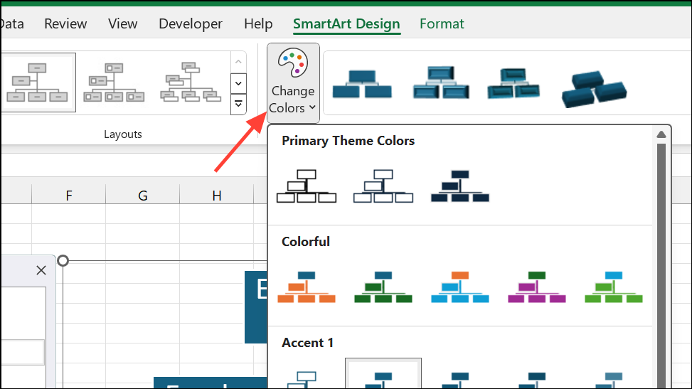 Metodo 1: creazione di un organigramma utilizzando SmartArt in Excel